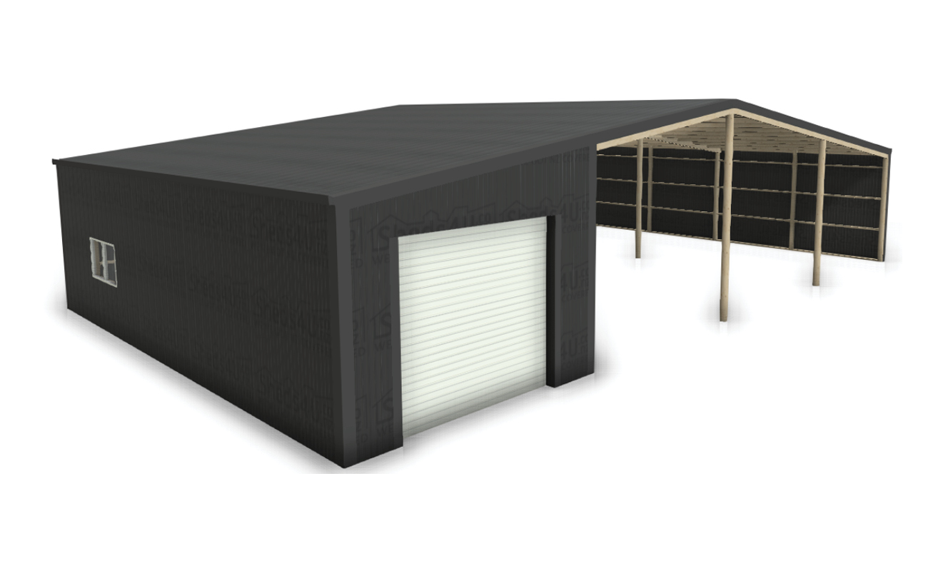 - Two bays enclosed with three bays open front