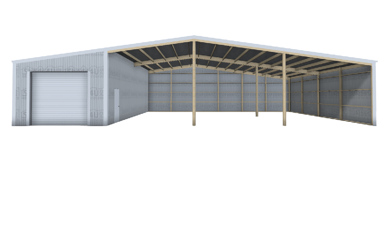 This open-fronted shed with enclosed 5 x 12m lock-up section is a fantastic deal! 12m wide x 20m deep and 3.6 to 5m high (8o pitch) – space galore plus security, add real value to your farm!